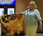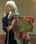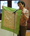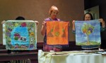 Paula also showed Challah covers made by her students at a seven-week silk painting class she gave at Beth Emeth Synagogue. Paula brought her students with her tonight. Yascher Koach to all.