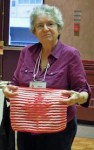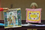 Karen Sanders has been totally wrapped in completing baby blankets – 26 of them, along with one baby sweater. She moved from knitting to crocheting and back to knitting. Karen opened her storage stash to show us a blanket she made 39 years ago, a quilt with animal pattern. She showed us a 43-year old blanket her own grandmother made for her children, and she also knitted a baby hat that she will be bringing on her trip to South Africa to welcome a new grandchild. Karen is taking along a long pine needle basket made by her late mother. Safe trip, Karen and Michael.